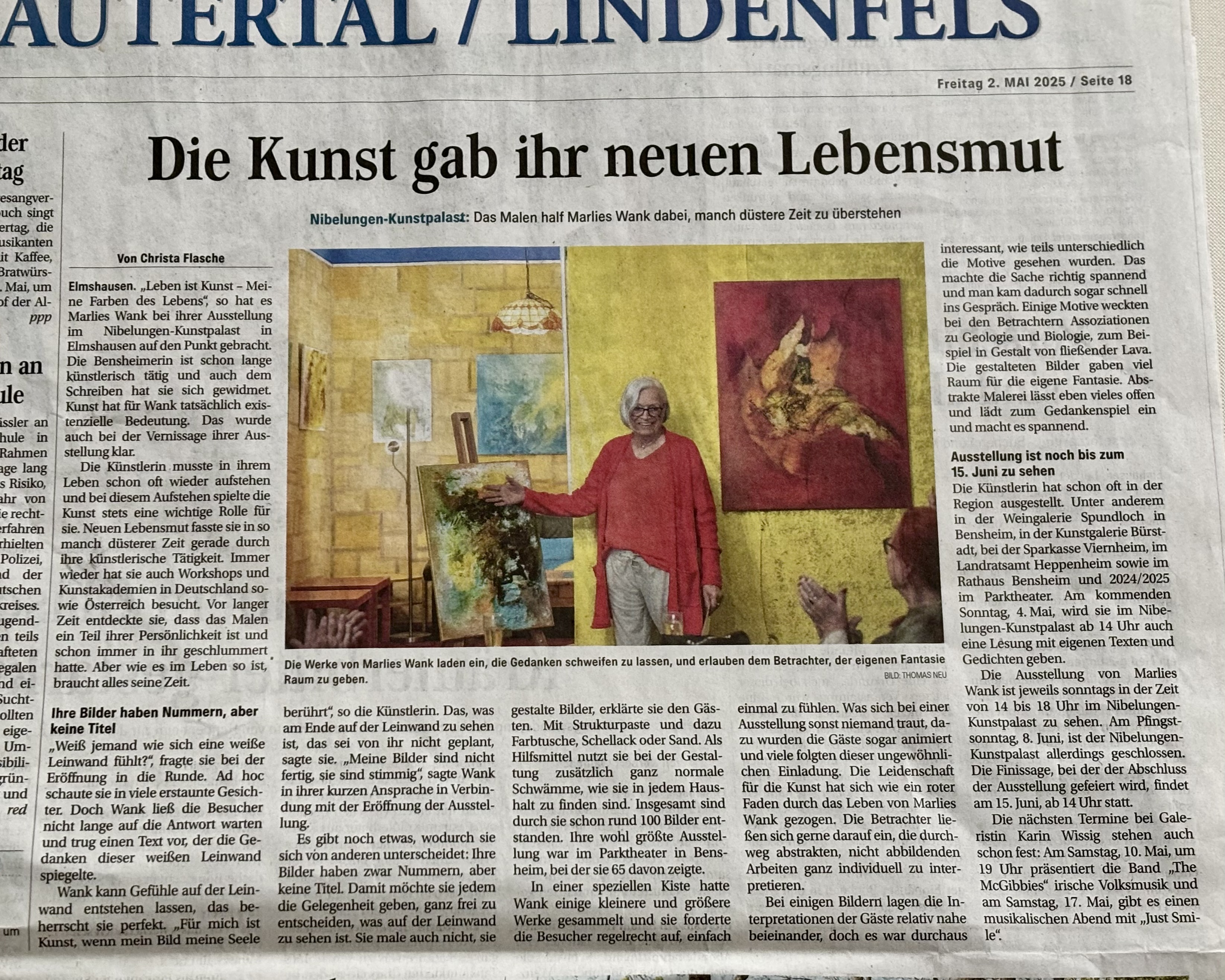Ich bin Marlies Wank und lebe seit vielen Jahren in Bensheim an der schönen Bergstraße.