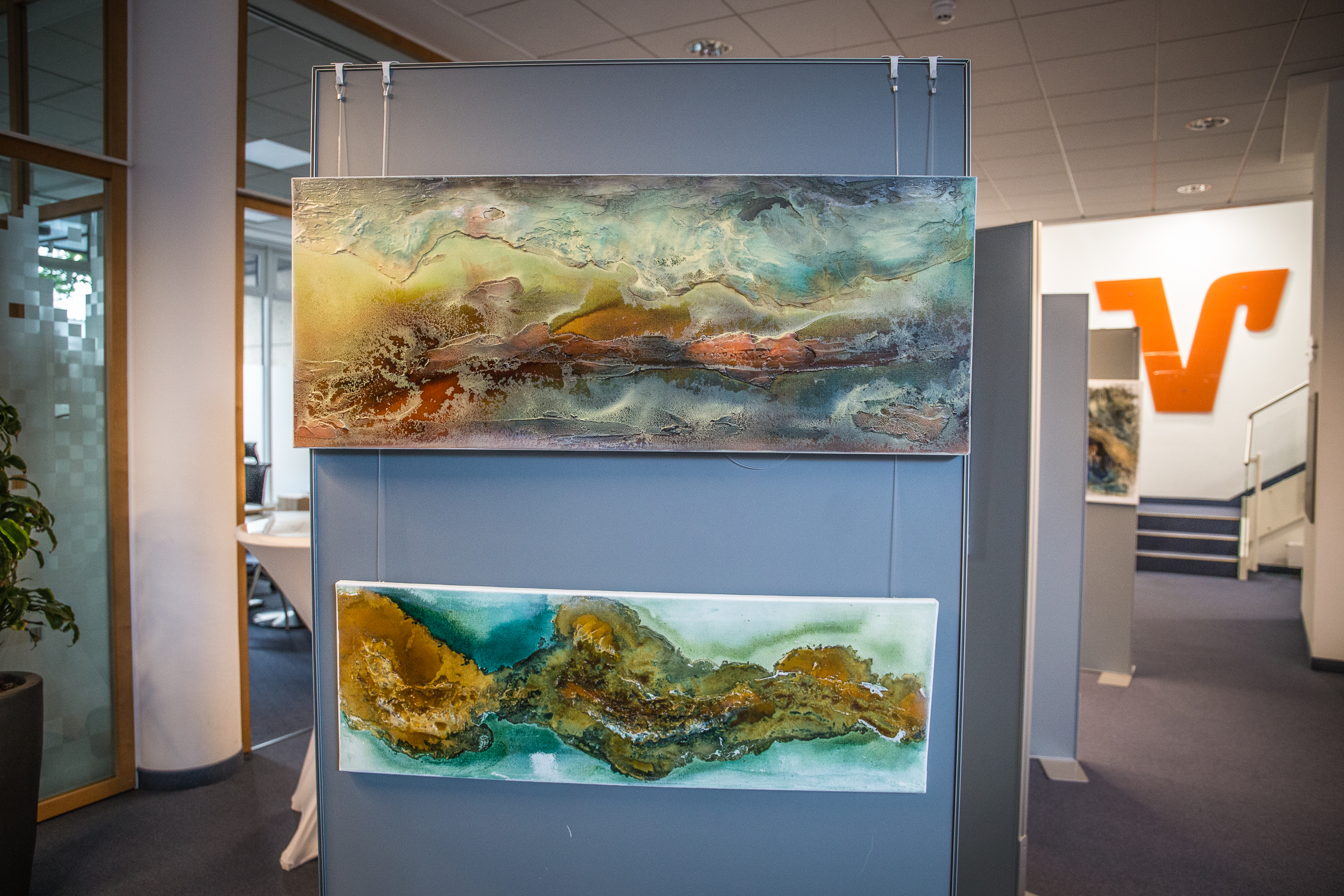 Akzente. Ihre abstrakten Bilder inspirieren den Betrachter und regen seine Fantasie an.